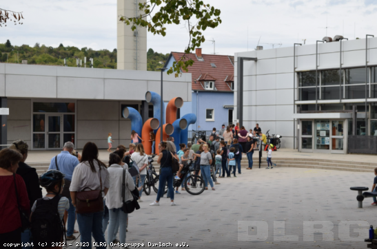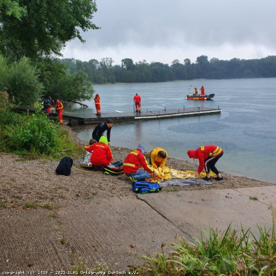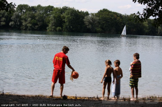 DLRG Mitmachtag am Grötzinger Baggersee Am 17. Juni 2023 fand der zweite Mitmachtag der DLRG Ortsgruppe Durlach am Grötzinger Baggersee statt. Während der stationäre Wasserrettungsdienst zur Sicherheit der Badegäste am See lief, konnten alle Besucher*innen auch selbst aktiv werden. Um der Öffentlichkeit die Arbeit der Ortsgruppe am See und über den Wasserrettungsdienst hinaus bekannter zu machen, waren einige Aktive vor Ort und konnten Übungen zeigen, Fragen beantworten und Infomaterial verteilen. Flyer der Jugendarbeit und Jahresheftchen der Ortsgruppe gaben Infos zum Mitnehmen ab, die Sie auch online unter https://durlach.dlrg-jugend.de/ und https://durlach.dlrg.de/ finden können. Während die kleineren Interessierten sich mit Ausmalbildern von Baderegeln vergnügen konnten, wur ... Mehr erfahren