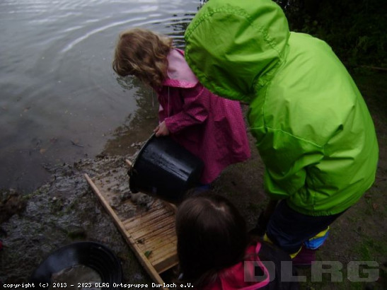 Das bereits traditionelle Goldwaschen der Durlacher DLRG Jugend fand auch in diesem Jahr wieder statt. Elf neugierige GoldwaschanwärterInnen trafen erwartungsvoll am 29.06.2013 am Grötzinger Baggersee ein, der die großen Schätze verbergen sollte. Trotz eisiger Regenschauer und des feucht-kalten Wetters machten sich die hoffnungsvollen Schatzsucher unter der Leitung von Michael Leopold und seines Sohnes Linus mit Schaufel, Waschbank und Eimer bewaffnet ans Werk. Schnell war klar, dass Goldwaschen doch nicht so einfach ist und sich keine vollständigen Goldbarren im See verbargen. Dennoch träumten die Kinder weiter von großen Villen und entwarfen eifrig Pläne, wie sie an das gesamte Gold des Grötzinger Baggersees gelangen konnten. So wurde die ... Mehr erfahren