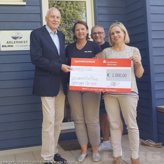 „Alle Karlsruher Kids lernen schwimmen“ - Unter diesem Motto stand das 11. Grötzinger 24-Stunden-Schwimmen der DLRG Durlach-Grötzingen im Hallenbad Grötzingen. Die fleißigen Wasserratten der Augustenburg-Gemeinschaftsschule, verschiedener Vereine, DLRG-Ortsgruppen und 80 Einzelteilnehmer erschwammen gemeinsam hervorragende 996 Kilometer. Die geschäftsführende Gesellschafterin der Oettinger-Bau Gruppe aus Malsch, Frau Catrin Oettinger, rundete die Spendensumme auf 1000 Euro auf und übergab den Scheck im Beisein von Birte Deufel (Leiterin Stützpunkt Grötzingen der DLRG Durlach) und Michael Deufel (Leiter des DLRG Bezirks Karlsruhe und 1. Vorsitzender der OG Durlach) an den Initiator des Projekts SchwimmFixPlus, den Vorsitzenden ... Mehr erfahren