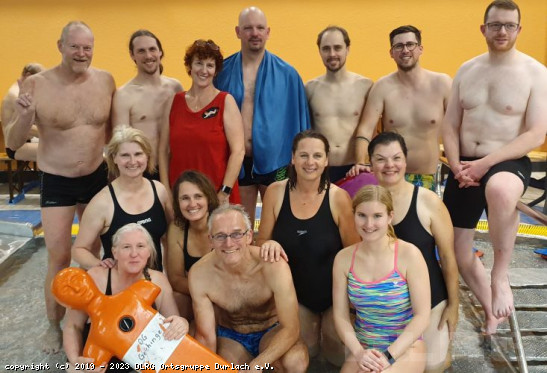 Schon früh startete das Wettkampfjahr für die DLRG-Masters der Ortsgruppe Durlach mit ihren Stützpunkten Grötzingen und Söllingen. Die Deutschen Seniorenmeisterschaften standen bereits am letzten Januarwochenende auf dem Terminplan. Zum ersten Mal verstärkt durch eine Herrenmannschaft startete das Team nach Georgsmarienhütte. Die Einzelwettkämpfe am Freitag bestritten Herbert Hölzer und Margarete Beideck, der wieder ein Treppchenplatz und damit die Bronzemedaille gelang. Die Mannschaften griffen dann am Samstag ins Geschehen ein, zum Teil schon zu früher Stunde – um 6.30 Uhr begann bereits das Einschwimmen! Die Herren, krankheits- und verletzungsbedingt mit einer Rumpfmannschaft am Start, schlugen sich wacker und erreichten einen 17. ... Mehr erfahren