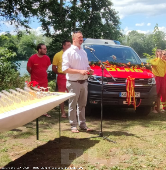 Bei strahlendem Wetter konnte dieses Jahr am 25.Juni wieder unser Sommerfest stattfinden. Diesmal mit einem ganz besonderem Highlight: Der Segnung unseres neuen Einsatzfahrzeuges. Nach langer Planung und der Sammlung von Spenden konnten wir endlich ein neues Fahrzeug kaufen, das beim Sommerfest von den Pfarrern Herr Wittek aus Grötzingen und Herr Gut aus dem Pfinztal zusammen mit der Wasserrettungsmannschaft gesegnet wurde. Daraufhin erhielt das Fahrzeug eine feierliche Sektdusche und auch für die Gäste gab es einen Sektempfang. Beim Sommerfest hatten alle Besucher die Möglichkeit sich die neue Wasserrettungsstation anzuschauen, sowie einen Einblick in die Arbeit der Rettungsschwimmer zu bekommen. Dazu wurde auch eine moderierte Schauübung durchgeführt, in der ein Bootsunfall s ... Mehr erfahren