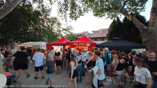 Nach einer viel zu langen Pause konnte am ersten Juliwochenende endlich wieder das Durlacher Altstadtfest stattfinden. Das DLRG-Dorf beim alten Friedhof in Durlach wurde hochmotiviert von den Ehrenamtlichen der Ortsgruppe aufgebaut und die Angebote waren mal wieder ein voller Erfolg! Der Grill lief so gut, dass neben Grillgut und Pommes sage und schreibe 2280 Brötchen verkauft wurden. Auch die Cocktailbar konnte Rekordumsätze vorzeigen und am Crêpes-Stand kamen die Helfer*innen gar nicht mehr aus dem Crêpes-Drehen heraus. Hier hatte in diesem Jahr auch ein veganer Crêpes-Teig sein Debut, der mit positiver Rückmeldung vom Publikum angenommen wurde. Die Kinder konnten sich wieder über Zuckerwatte und die Waterballs freuen und über das Wochenende verteilt wurden insgesamt weit über 200 Kinder ... Mehr erfahren
