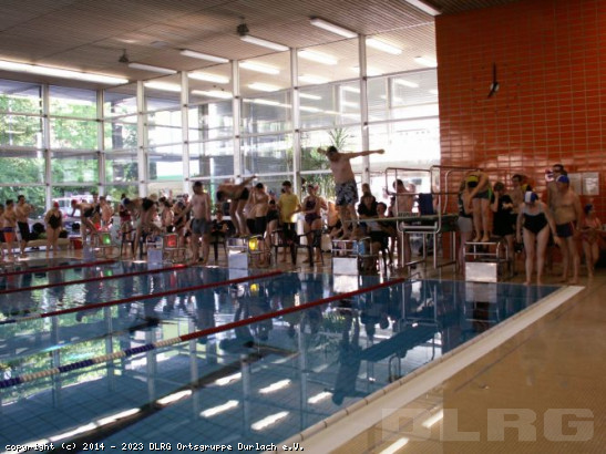 Die DLRG OG Durlach eröffnete mit dem ersten Wettkampf 2014, den internen Vereinsmeisterschaften, am 26.01.2014 die Wettkampfsaison im Grötzinger Hallenbad. Es nahmen über 40 Mitglieder der Ortsgruppe teil, um gemeinsam wieder zum bekannten „Wettkampfgefühl“ zurückzufinden. Für viele junge Schwimmer war es auch das erste Mal, dass sie an einem Wettkampf teilnahmen und so konnten diese ein wenig in die kommenden Bezirksmeisterschaften im März „hineinschnuppern“. Außerdem sind die Vereinsmeisterschaften ein sehr guter Test für alle Schwimmer, da man seinen Leistungsstand nach der Weihnachtspause sieht und weiß woran noch gearbeitet werden muss. Nach diesen ersten Meisterschaften steht der kommenden Saison nichts mehr ... Mehr erfahren