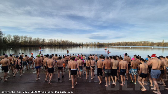 Über 90 kälteresistente Menschen aus Grötzingen und Umgebung wagten sich bei der eisigen Neujahrsbegrüßung der DLRG OG Durlach in den 8 Grad kalten Grötzinger Baggersee. Gewohnt professionell organisiert und abgesichert wurde die Veranstaltung durch 16 Mitglieder des Wasserrettungsdienstes der Ortsgruppe unter der Leitung von Jens Pickenhahn und Pascal Hetzel. Durch die große Anzahl Teilnehmer werden diese inzwischen registriert und mit einer nummerierten Bademütze versehen, um sicherzustellen, dass alle Schwimmer das Wasser gesund, munter und aufgefrischt wieder verlassen. Bei Glühwein und Kinderpunsch konnten sich die Tapferen wieder aufwärmen und mit den ca. 150 begeisterten Zuschauern Neujahrsbrezel und andere Leckereien genieße ... Mehr erfahren