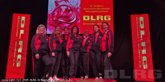 Ein aufregendes Wettkampfjahr mit den Deutschen Meisterschaften in Berlin und den Weltmeisterschaften in Montpellier ging mit den Baden-Württembergischen Seniorenmeisterschaften in Eppingen zu Ende. Die DLRG Ortsgruppe Durlach mit ihren Stützpunkten Grötzingen und Söllingen war mit einem starken Team – bestehend aus drei Damen- und zwei Herrenmannschaften – am Start. Und die Ergebnisse konnten sich sehen lassen! Die AK 170 weiblich erkämpfte sich trotz drohender Strafpunkte einen hervorragenden zweiten Platz. Auch die 1. Mannschaft der AK 200 weiblich schaffte die Silbermedaille nach spannendem Wettkampf, während die 2. Mannschaft nur knapp am Treppchen vorbeischwamm und den vierten Platz belegte. Auch die Herren der AK 200 erreichten einen 2. Plat ... Mehr erfahren
