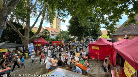 Am Wochenende des 4. bis 5. Juli war es wieder so weit: Das Altstadtfest in Durlach lockte zahlreiche Besucher*innen in die Gassen der Altstadt und mittendrin sorgte die DLRG OG Durlach mit einem beeindruckenden Standdorf für gute Laune, Action und kulinarische Highlights. Direkt am Alten Friedhof präsentierten wir unser vielfältiges Angebot: Insgesamt acht Stände wurden mit großem Aufwand und noch größerem Engagement betrieben. Ob Waterballs zum Austoben, der beliebte Tauchturm, Kinderschminken für die Kleinsten oder unsere Stände mit Crêpes, Gegrilltem, Cocktails, alkoholfreien Getränken und der stimmungsvollen Biergondel - für alle war etwas dabei. Bereits am Donnerstag begannen wir mit dem Aufbau. Zwei volle Festtage lang waren wir für unsere Gäste da, bis in die Nacht hinein. Dr ... Mehr erfahren
