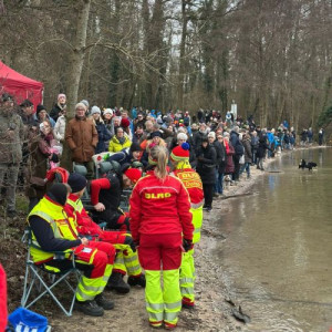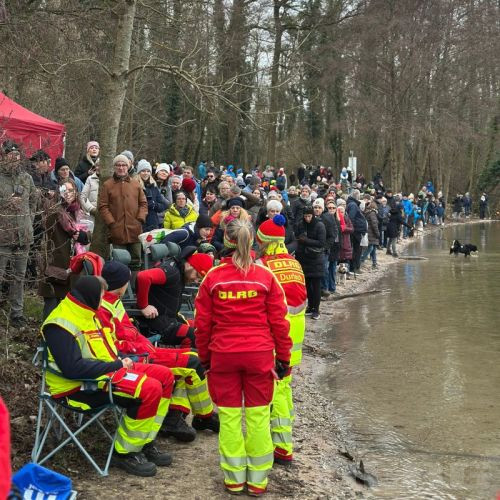 Die Sicherheit unserer Teilnehmenden stand wie immer an erster Stelle. Insgesamt waren 21 Einsatzkräfte in die Wasser- und Sanitätsabsicherung eingebunden. Zum Einsatz kamen unter anderem eine Einsatzleitung, ein Motorrettungsboot, ein Tauchtrupp mit zwei Einsatztauchern, zwei Stand-Up-Padels, ein Rettungsbrett, Wasserretter an der Wasserkante sowie ein Sanitätstrupp mit Rettungswagen und Notärztin. Ein herzlicher Dank geht an den ASB Karlsruhe für die Bereitstellung des Rettungswagens und der Besatzung. Insgesamt waren rund 40 bis 45 Helfer*innen bei Absicherung, Anmeldung, Verpflegung, Aufbau, Abbau und Koordination im Einsatz.
